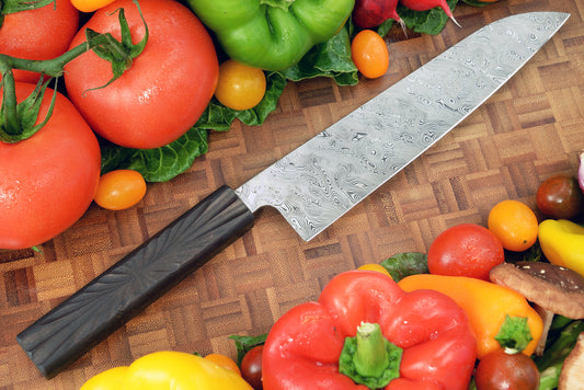 Santoku Style Kitchen Knife with Damasteel Blade and Composite Handle